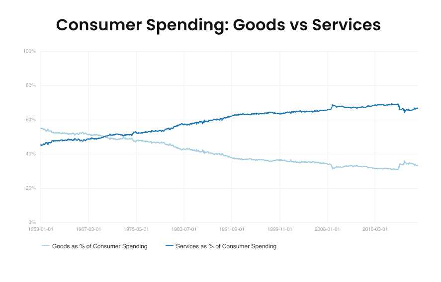 The American economy is no longer driven by purchasing Goods like in the early 1900s…